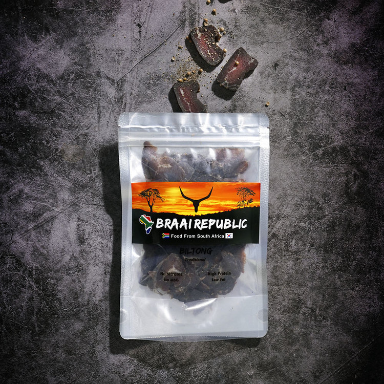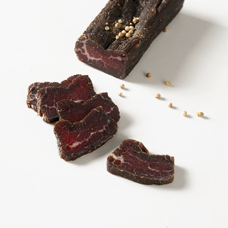 Australian eye-round of beef, cut into thick steaks, then marinated and cured before drying slowly at low temperatures for that subtle yet unique South African taste. Great with a cold bevvie!